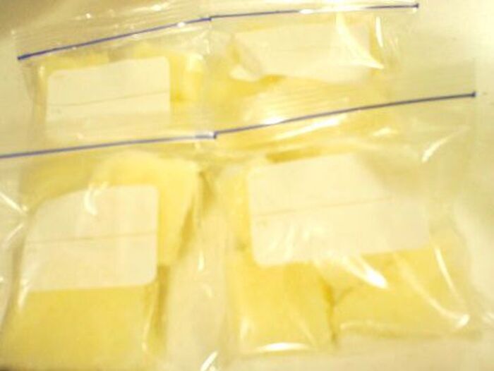 袋のまま包丁の柄で叩き割って、ジップロックに小分けして保存してみました。