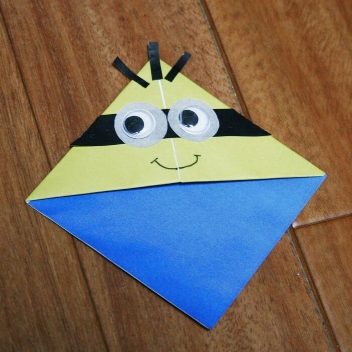 ミニオンのお腹部分にあたる青色は折り紙を四角に4等分にし、目の部分は黒の長細い紙とグレーの目の縁になる丸い形にそれぞれカット