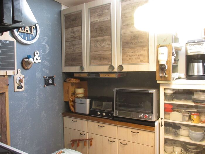 「開けにくいやん!」と突っ込まれがちですが、こちらの収納棚、結局高くて取りづらいので、使用頻度の低いものが収納されているので大丈夫なのです。
