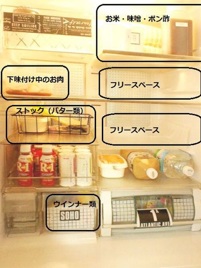 バター類のストックの手前も空いてるので、賞味期限が短いものはココへ。