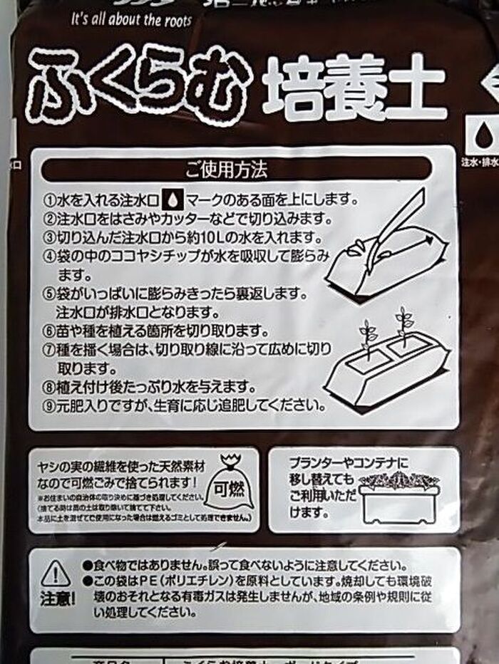 可燃ゴミで捨てられます!と書かれていますが、通常の土と同様、捨てずに消毒・再生することもできます。元の形に戻して使うことはできませんが、1回使用しただけで捨てなくても2回目以降も用土に混ぜて使うことはできます(^^♪