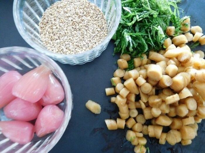 炊き立てごはんにうなぎに添付されているタレ1袋を全体にまぶし 山ごぼうとしそとうなぎの半量を加えさっくり和える