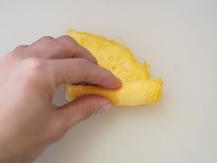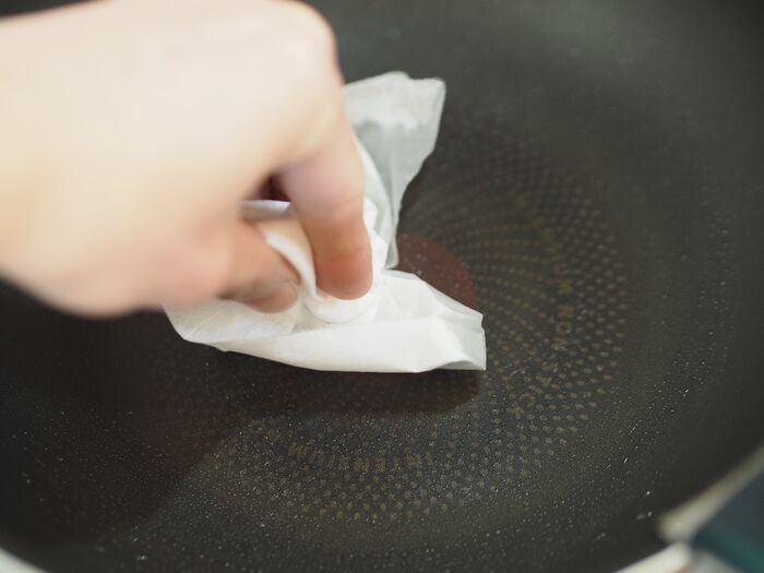 余分な脂をふき取ることで、薄焼き卵の表面がキレイに仕上がります。
