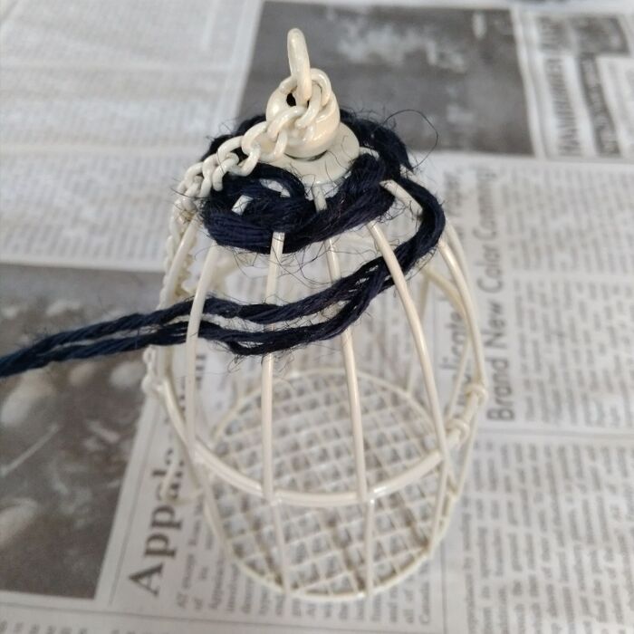 こちらは、ダイソーの可愛いワイヤーケージを毛糸でデコ☆