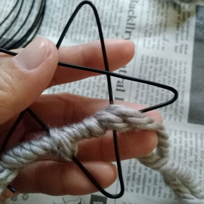 星のガーランドは、ワイヤーで作ったお星さまにお好みの毛糸を巻いて…