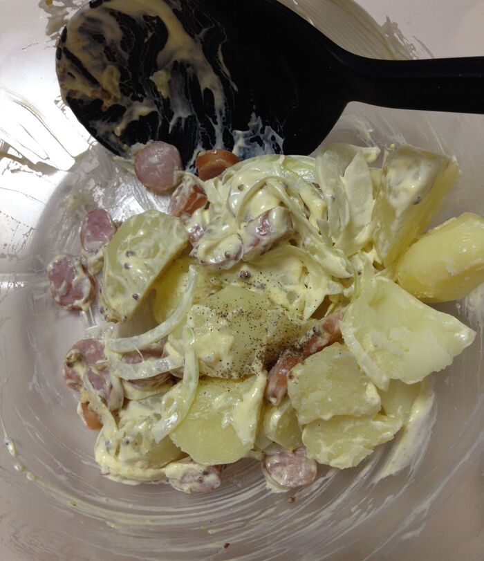 *新じゃがで作った、ジャーマンポテトサラダ。おいしくいただきました。