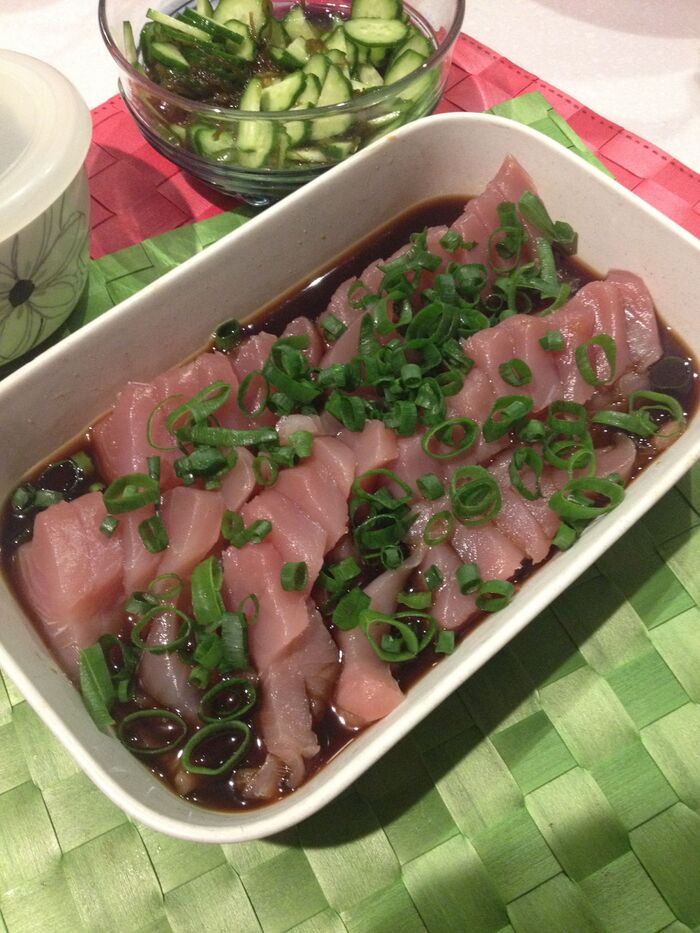 マグロ丼の漬け液を作る時、冷蔵庫に餃子のタレがあったら入れちゃいます。