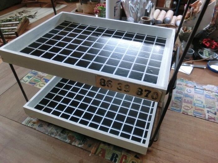 黒タイル柄のリメイクシートを貼ったことで、少しレトロっぽくもあり、引き締まった感じがします。