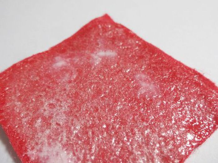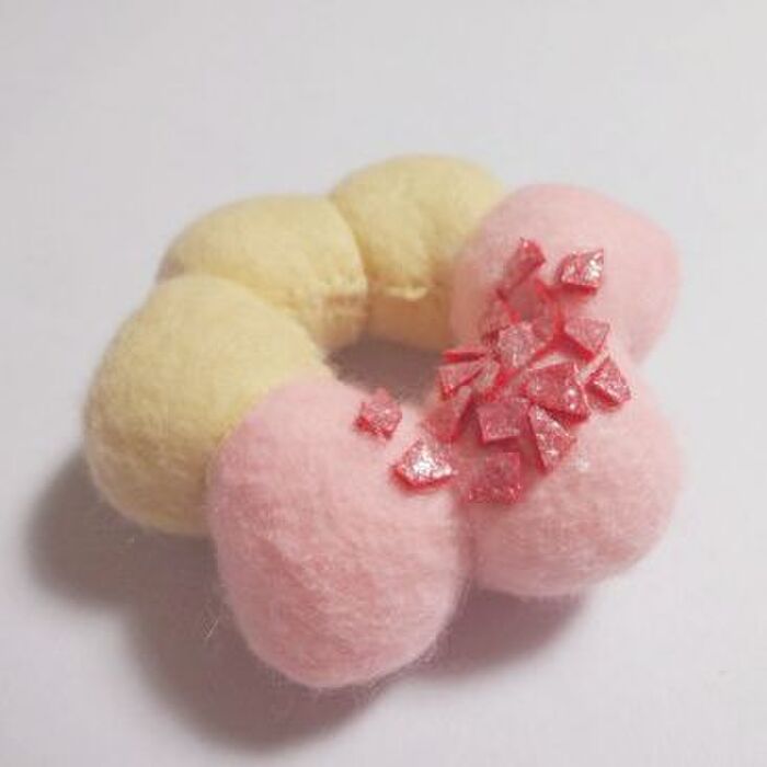 赤色フェルトのトッピングは・・・フリーズドライのイチゴやフランボワーズ風に仕上がります