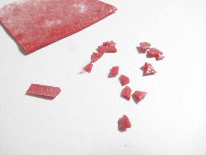 1cm弱に細長く切ってから、ランダムに切っていきます