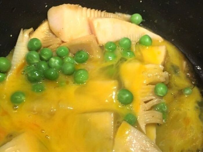 たけのこは食べやすい大きさに切るグリンピースはさっと茹でる