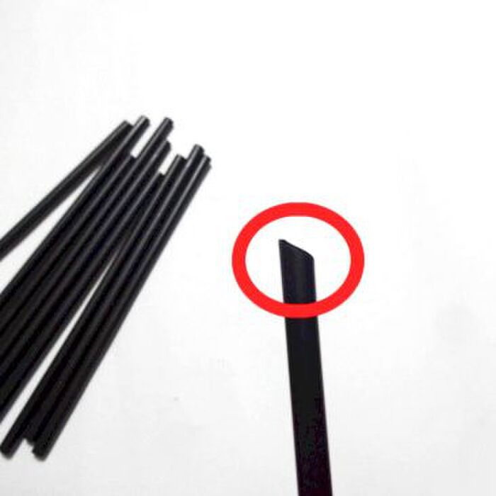 曲がるストローの場合は、曲がる部分(じゃばらの部分)は必要ないので、あらかじめ切り落としておきます