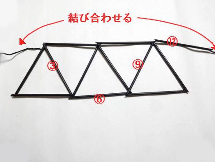 同じように作業を繰り返し、12本のストローを組んでいきます