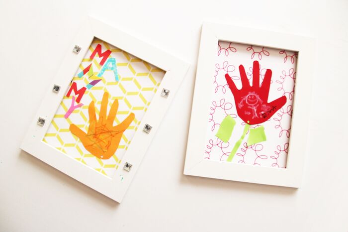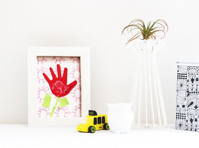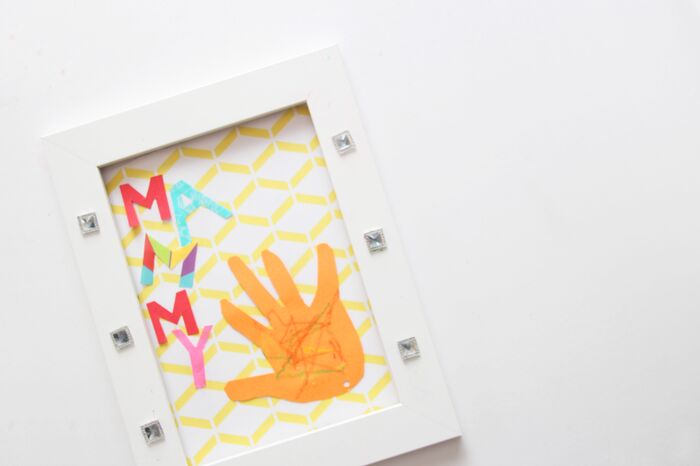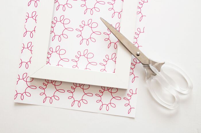 包装紙にのりでペタペタ貼り付け、フレームに入れるだけ!