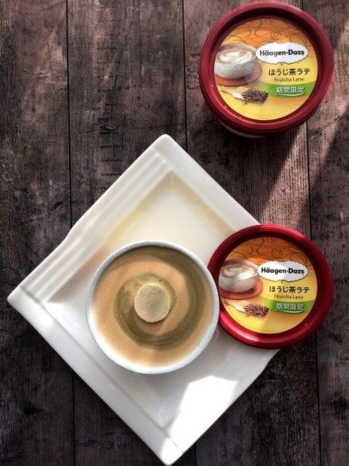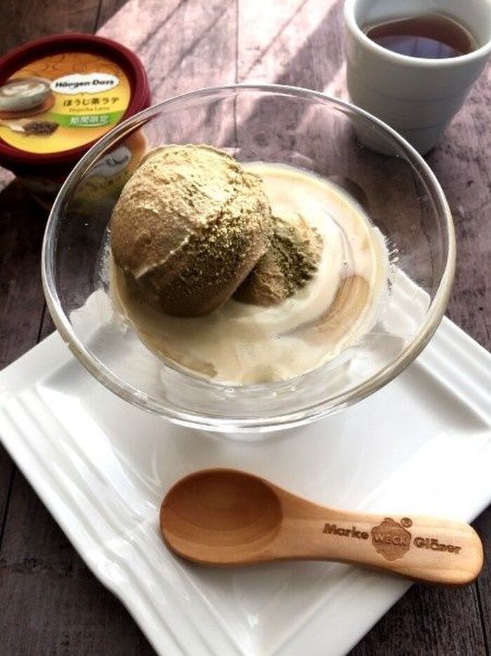 濃い目に入れた熱いほうじ茶をかけてちょっとおしゃれなアフォガートに。