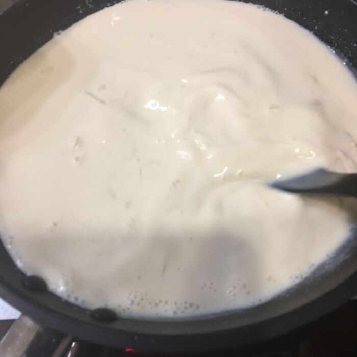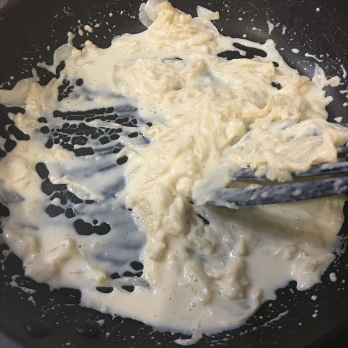 あまり煮すぎるとホワイトソースが固くなります。