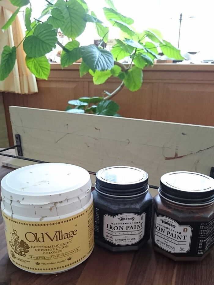 バターミルクでベターと塗ったと、アイアン塗料で少し汚しています。