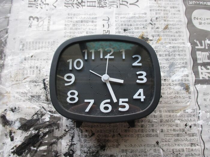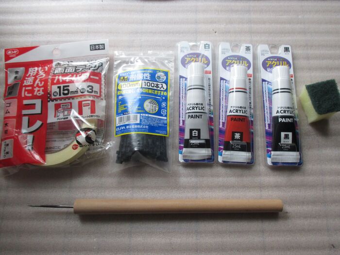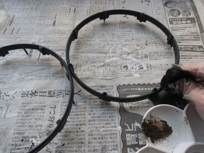 台所用スポンジでアクリル絵の具(黒)を、ぽんぽんと塗っていく。