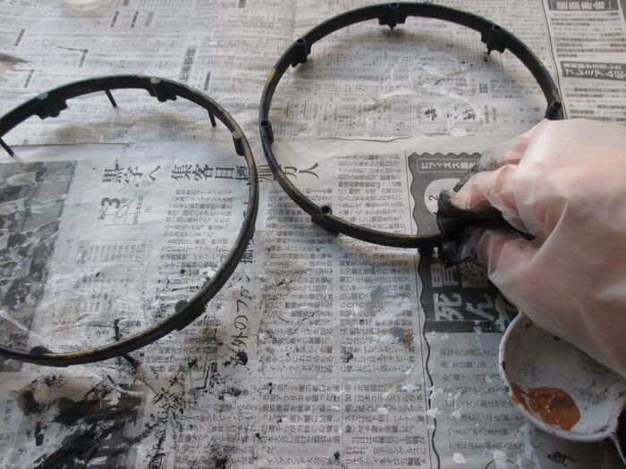 ゴールドを塗りすぎたと思ったら、再び黒を塗っていき、何度か色を重ねていき、色の調整をする。