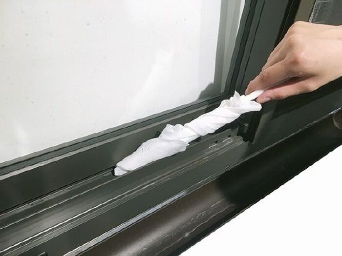 くるくる巻いて、こんな風にサッシのミゾなどの細かい部分もサッとお掃除できますよ。