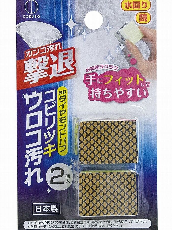 人工ダイヤモンド配合のクリーナー「SDダイヤモンドパフ」を使って水をつけてこするだけでスッキリ落とせます。