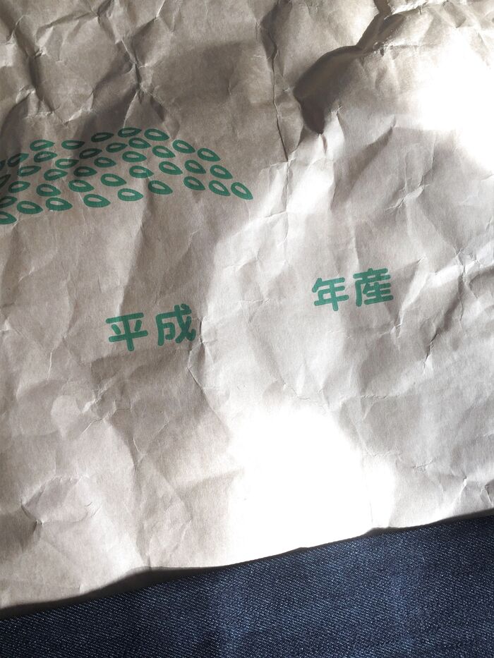 稲穂を完全に隠すのは難しいので、下の部分はまた同じように布でポケットを作って隠し、稲穂をうまく生かします。『平成』や『年産』の文字は・・・裏技使って一瞬で隠します。