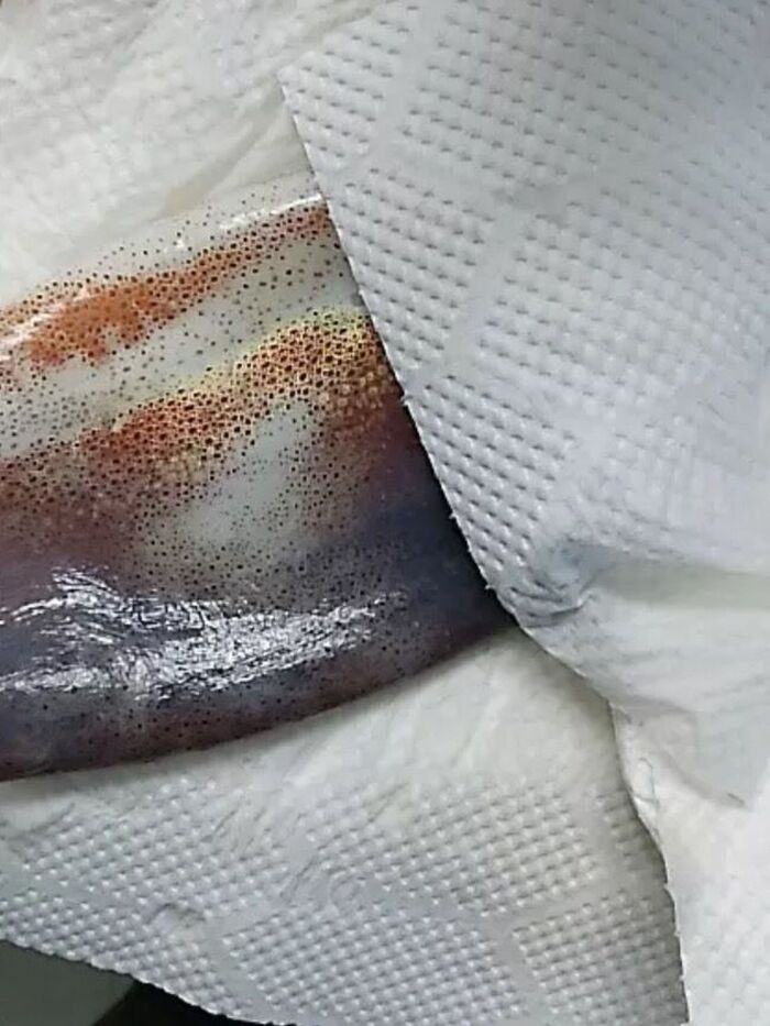 ⑫手ではらわたを出し、はらわたの膜をはずす。
