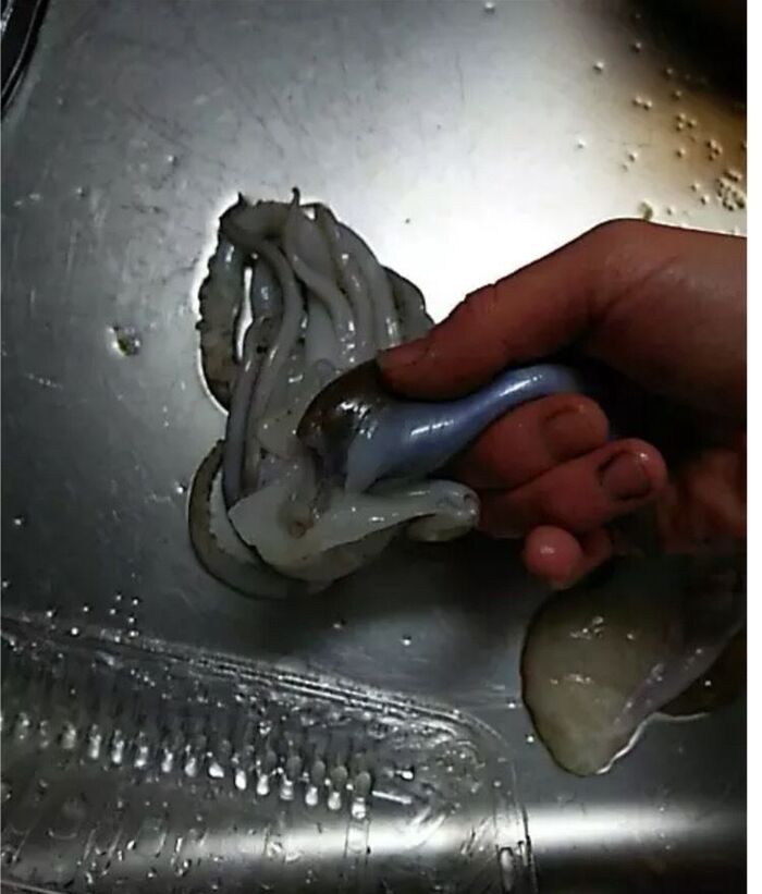 ※目玉がつぶれると液が飛び散るので、注意!