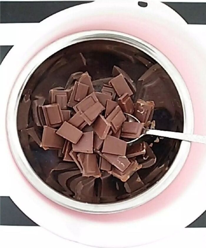 その上に、チョコレートの入ったボールをのせ、湯せんでチョコレートをとかす。