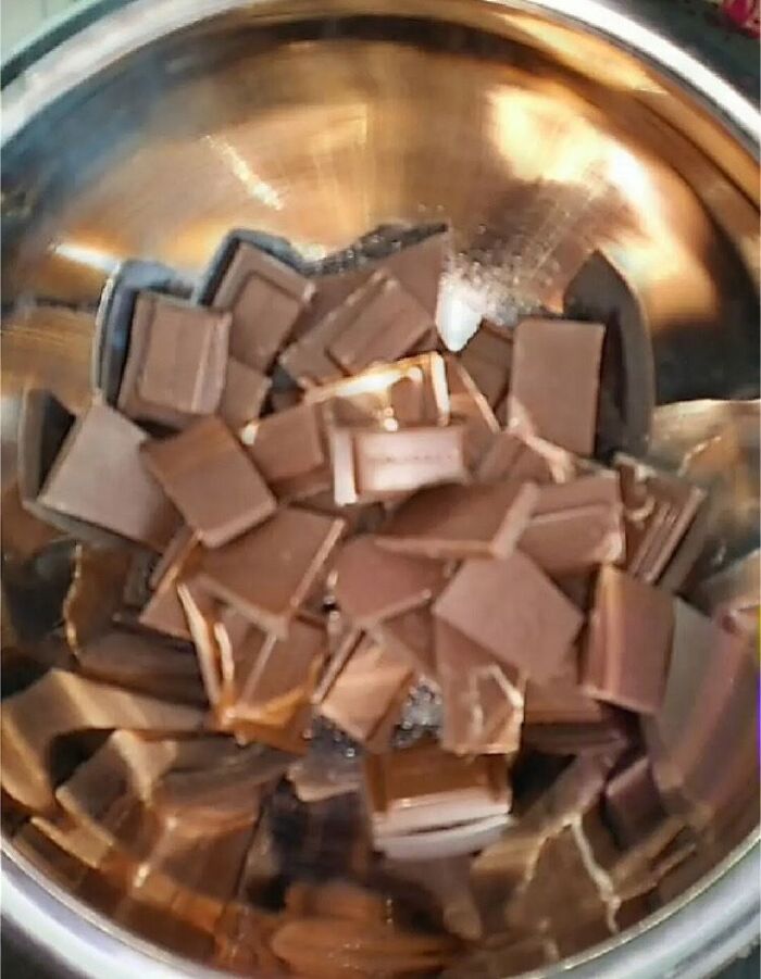 ※厚みのあるチョコレートの場合には、包丁で、粗きざみにする。