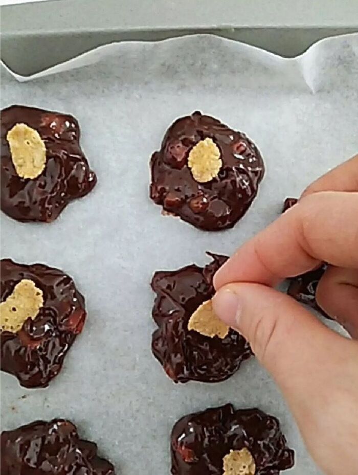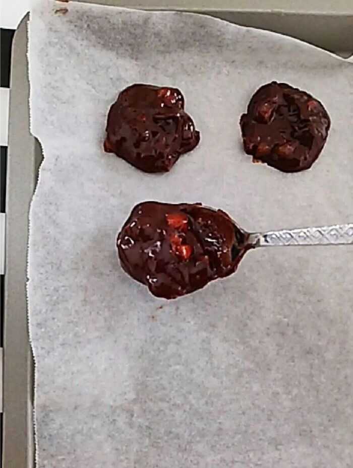 ⑥そこに、④のチョコレートを、スプーンですくって、お好みの大きさにする。