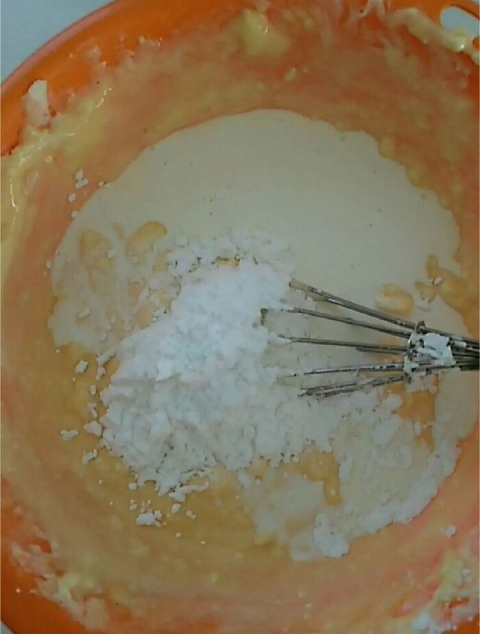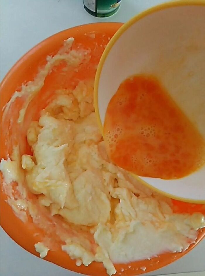 ◎卵と卵黄を、かきまぜたあとは、3回にわけ、混ぜ合わせること。