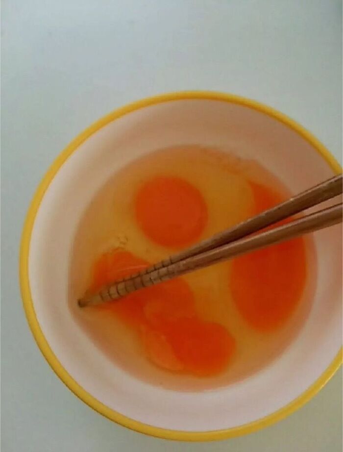 ④卵と卵黄を別の容器に入れ、かき混ぜる。