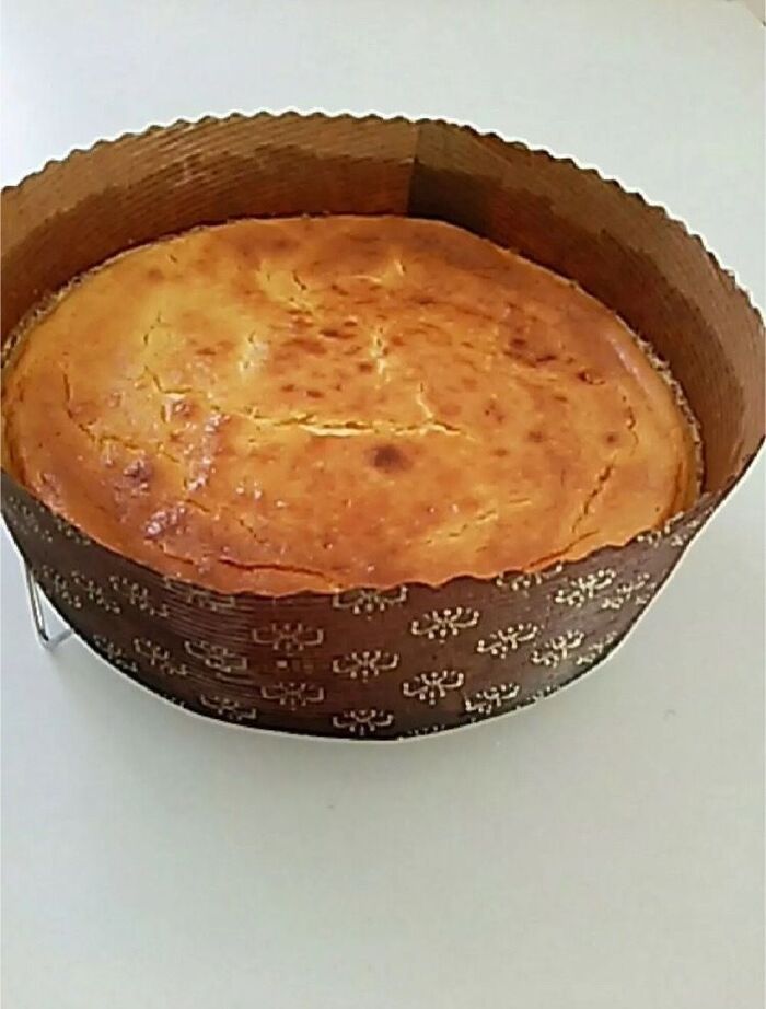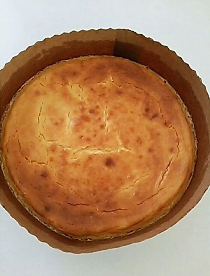 ⑭アルミのカップなどを手で開き、その上に、切り分けたチーズケーキをのせ、お皿にのせて、出来上がり〜(*´∀`*)