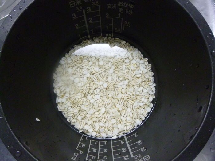 また水の中で綺麗に洗って水を切ったら炊飯器に入れる。