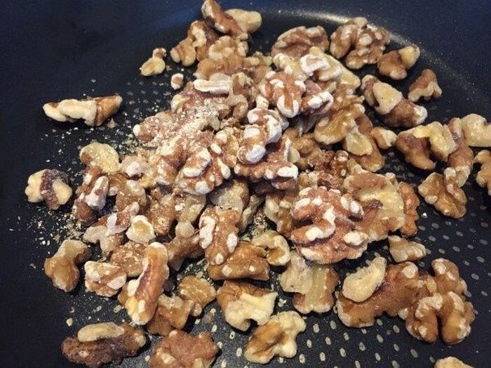 くるみは炒めて香ばしさを引き出してからピュレ状にします。