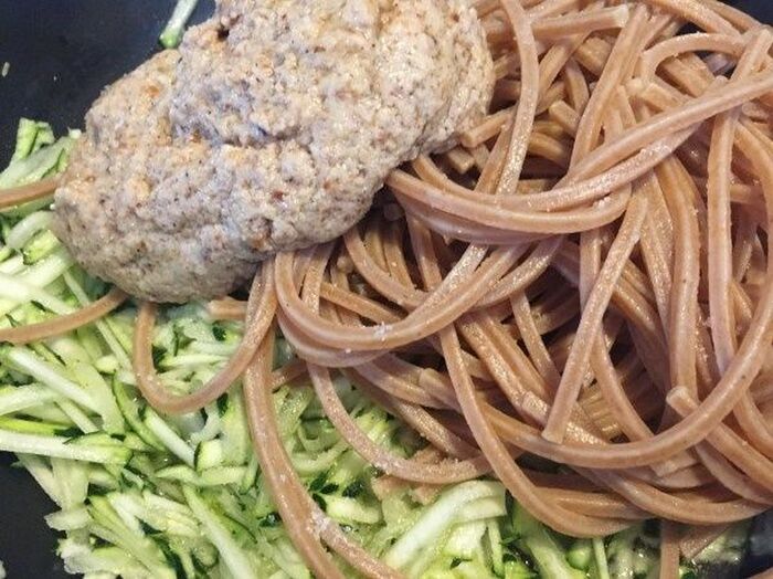 茹でた全粒粉のスパゲッティ
