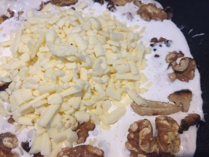 豆乳クリームとヴィーガンシュレッドを加え