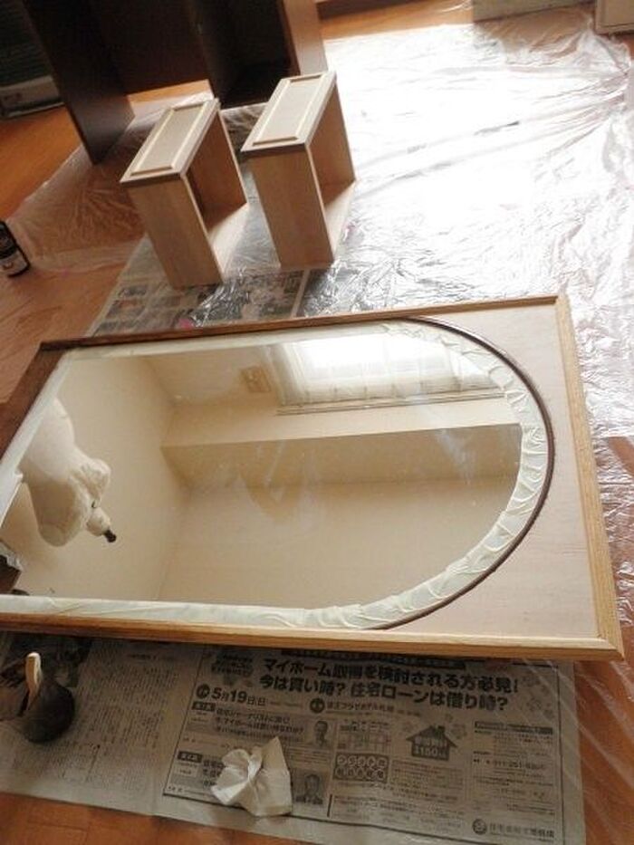 面材を剥がしたのと、鏡を曲線から長方形に変えたのが