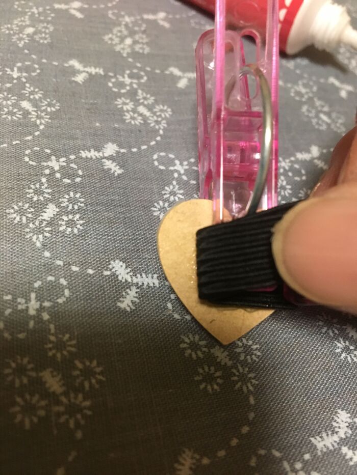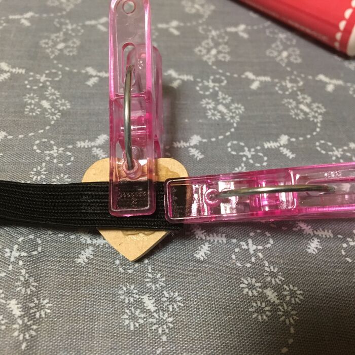 もう一方のゴムをかけるので、ゴムはこの位まで接着します。