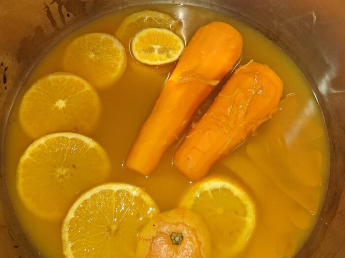 人参とオレンジジュース、ゼスト、グラニュー糖