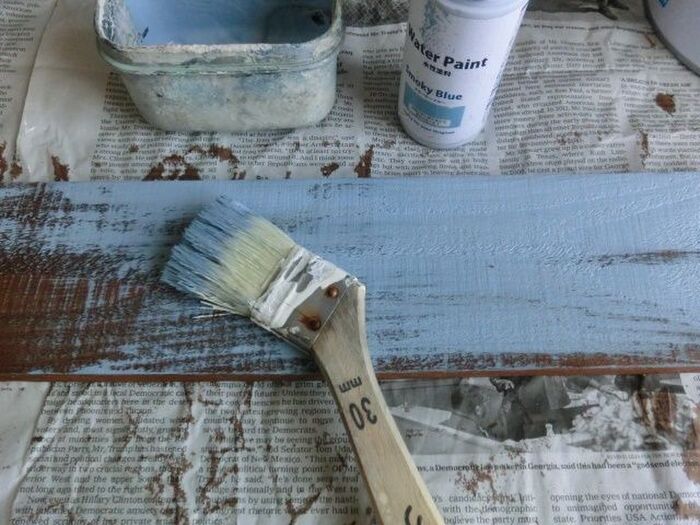 杉板は、ザックリ塗りやすい。下地のステイン剤も見え隠れすると…古材風な感じが出ます。