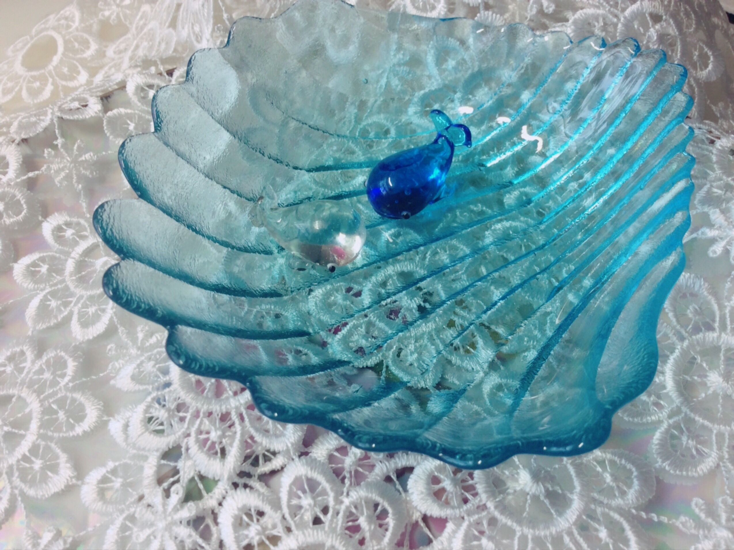 ブルーの ガラストレーが 海のようで 可愛らしいです(^-^)♡