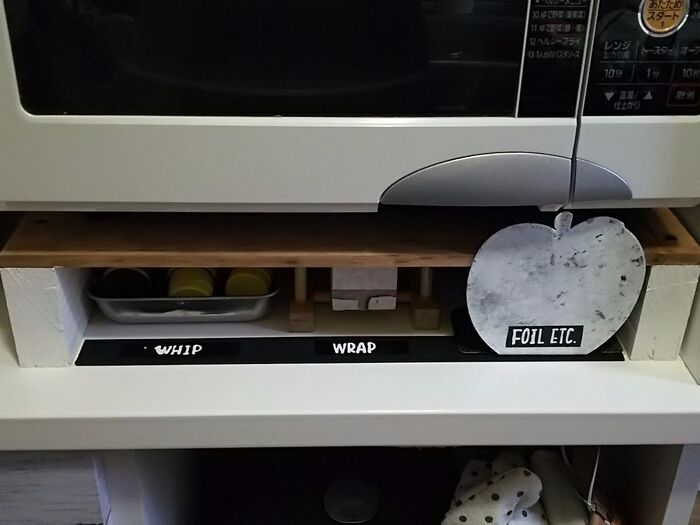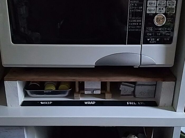レンジの重みを支えるために厚さのある木材を採用しました♪