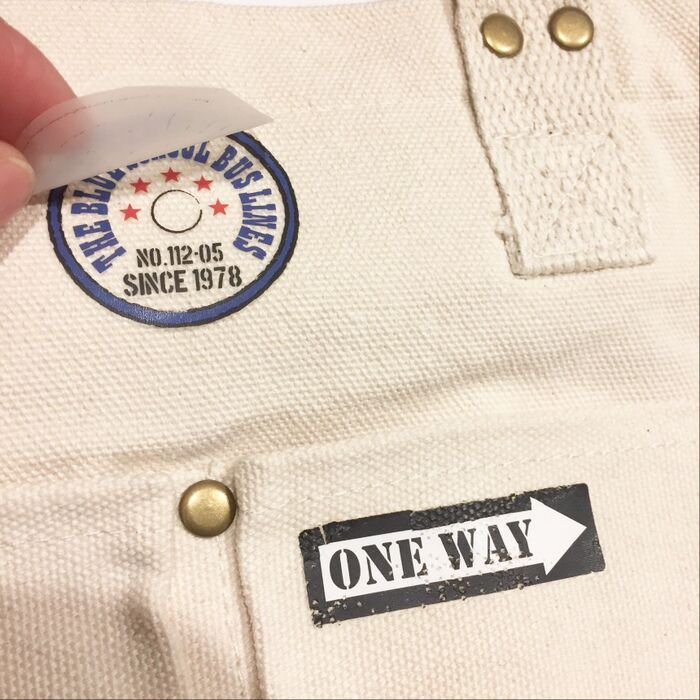 アイロン転写シートをアイロンで圧着させて、粗熱が取れたらフィルムをゆっくり剥がします。