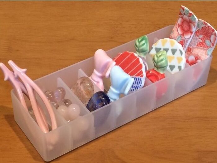 入れてみるとこんな感じになります( ´ ▽ ` )陶器やガラス製が多いですが、細かく仕切ることで割れも防げます。