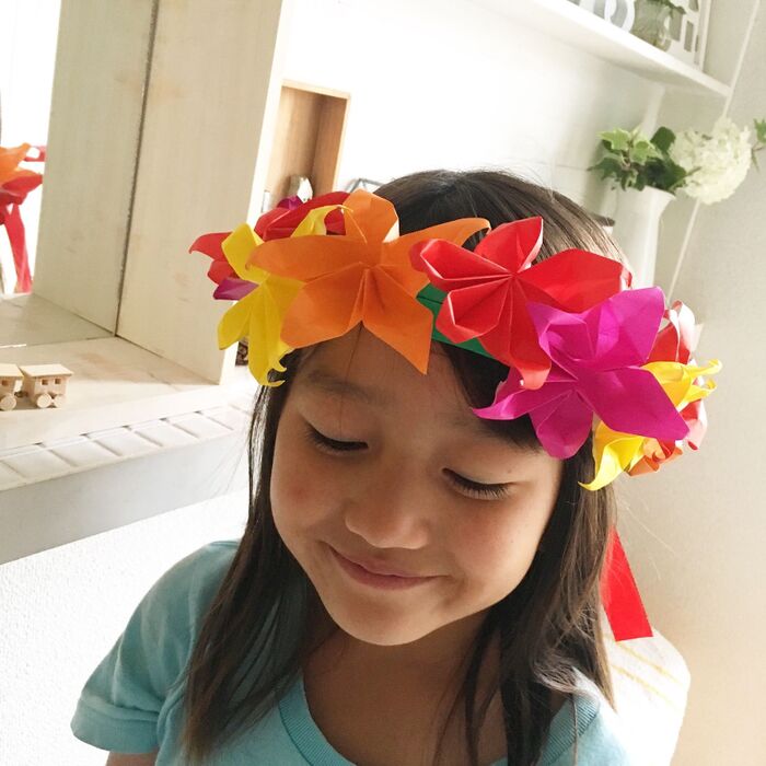 これまた折り紙で出来た 茎冠 に、沢山貼り付けて花冠に♫