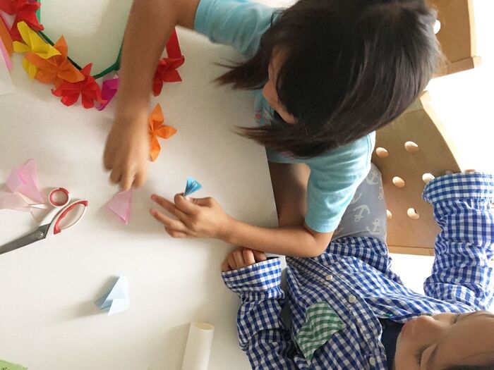 1枚の紙が立体的なお花になっていく感動を味わいつつ…