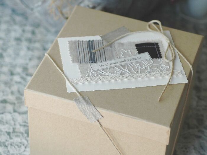 市販の小さな麻布バッグにnaturalな素材のレースや