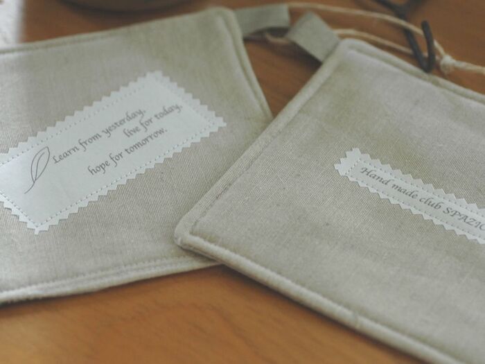 ワンポイイトの言葉や、フレーズが入るだけで素敵なオリジナル雑貨が出来上がります。